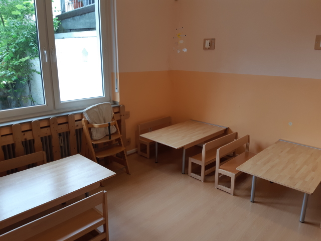 Im rechten Raum haben unsere Kinder die Möglichkeit ihre Kreativität zur fördern. Hier können sie sich mit verschiedenen Gestaltungsmaterialien beschäftigen. Sie lernen zum Beispiel den Umgang mit Knete, Schere und Stift. In diesem Raum finden sich altersgerechte Puzzle und Gesellschaftsspiele. Zusätzlich dient dieser Raum zum gemeinsamen Einnehmen der Mahlzeiten. Und dann noch unsere kleine, aber feine Küche.